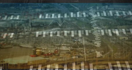 Futuristic Data Analysis Interface Over Cityscape Videos