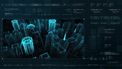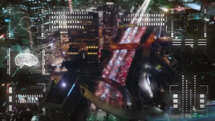 Futuristic Data Analysis Interface With City Traffic Background Videos