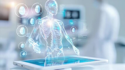 Futuristic Data Analysis Interface With Holographic Overlay Videos