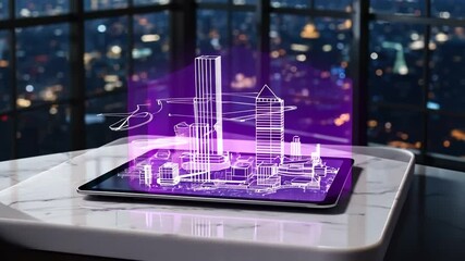 Futuristic Data Analysis Interface With Urban Cityscape Backdrop Videos