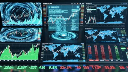 Futuristic Data Analysis Interface With World Maps Videos