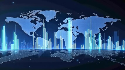Futuristic Data Analysis With Bar Graph On Grid Videos