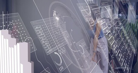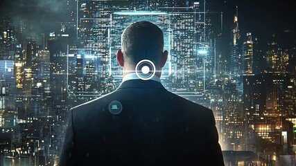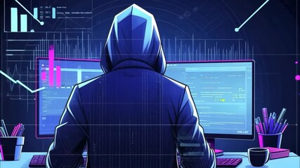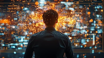 Futuristic Data Analysis With Programmer Viewing Digital Interface Videos