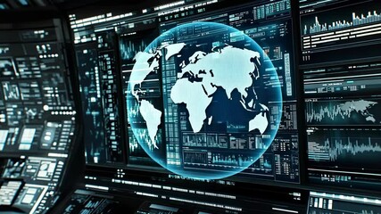 Futuristic Data Analytics Dashboard In A Server Room Videos