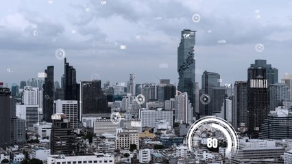 Futuristic Data Analytics Interface In City Background Videos