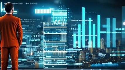 Futuristic Data Analytics Interface In Urban Landscape Videos