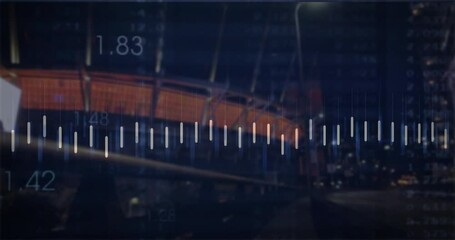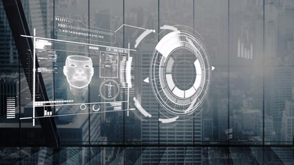 Futuristic Data Analytics Interface Over Urban Nightscape Videos