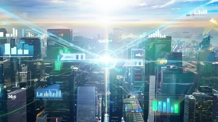 Futuristic Data Analytics Overlaying Cityscape Videos