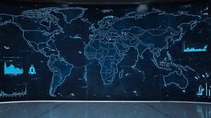 Futuristic Data Center With Digital Interface And World Map Videos