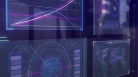Futuristic Data Center With Neon Digital Grid Overlay Videos