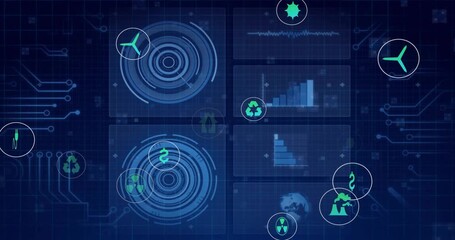 Futuristic Data Dashboard With Circles And Bars Videos