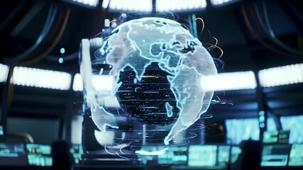 Futuristic Data Interface Holographic Screen With Network Globe Videos