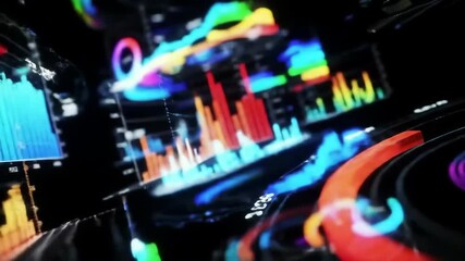 Futuristic Data Interface Overlay Display With Graphs Videos