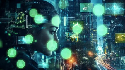 Futuristic Data Interface Overlaying Urban Environment Videos