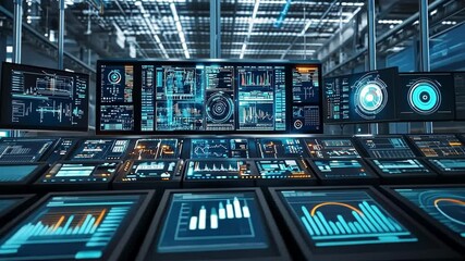 Futuristic Data Interface Panel In High Tech Server Room Videos