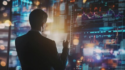 Futuristic Data Interface With Businessman Analyzing Information Videos