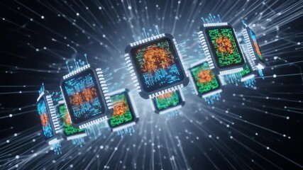 Futuristic Data Interface With Circuitry And Landscape Videos