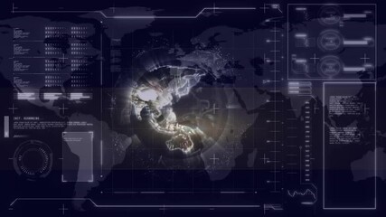 Futuristic Data Interface With Digital World Map And Metrics Videos