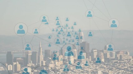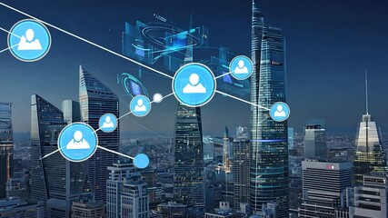 Futuristic Data Network Interface Overlay On City Skyline Videos