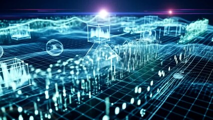 Futuristic Data Network Visualization With Geometric Elements Videos