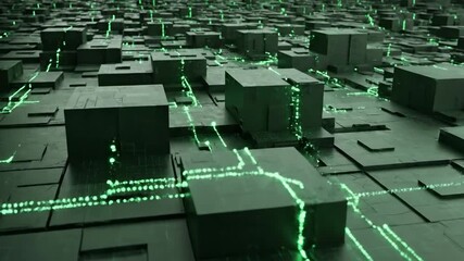 Futuristic Data Network With Green Digital Grid Videos