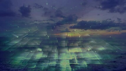 Futuristic Data Overlay On Tranquil Landscape Videos