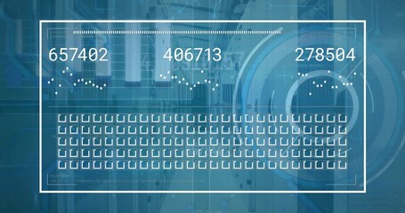Futuristic Data Processing And Server Room With Digital Infographics Videos
