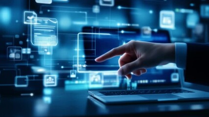 Futuristic Data Processing Animation With Digital Hand Interface Videos