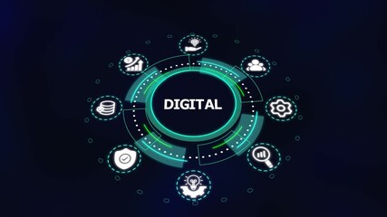 Futuristic Data Processing Interface Display With Conceptual Business Elements Videos