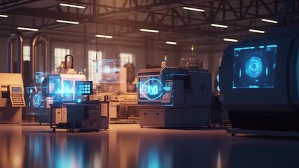 Futuristic Data Processing Interface In Warehouse Environment Videos