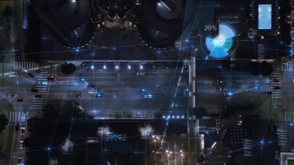 Futuristic Data Processing Interface Overlay On Cityscape Videos