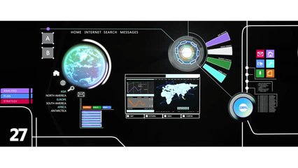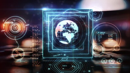 Futuristic Data Processing Interface With Global Map Hologram Videos