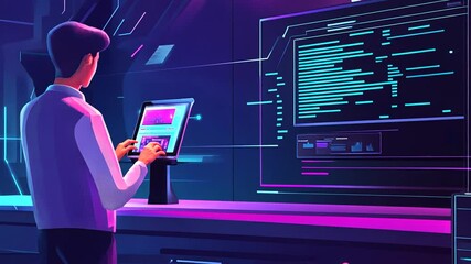 Futuristic Data Processing Interface With Holographic Elements Videos