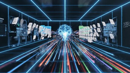 Futuristic Data Processing Interface With Purple Light Trails Videos