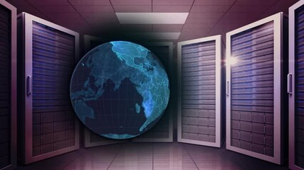 Futuristic Data Processing Over Computer Servers With World Map Videos