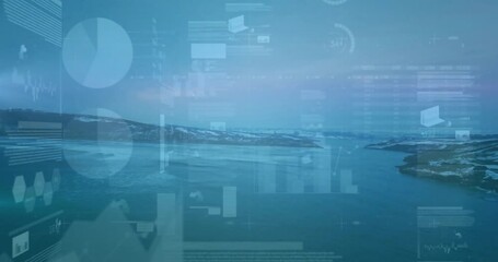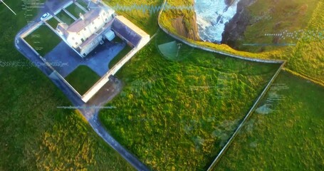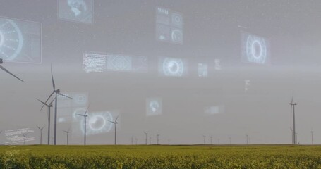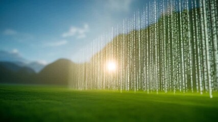 Futuristic Data Processing Over Green Landscape Videos