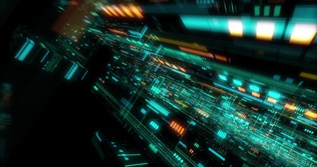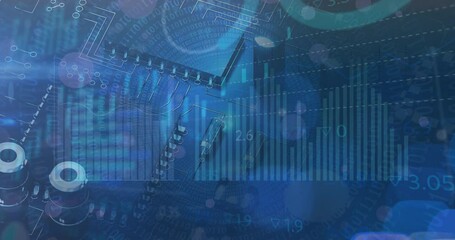 Futuristic Data Processing Screens Over Computer Motherboard Videos