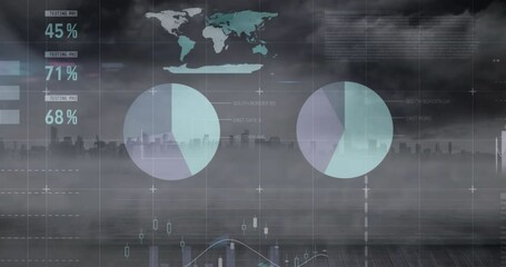Futuristic Data Processing Technology Over Urban Cityscape Videos