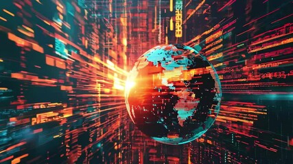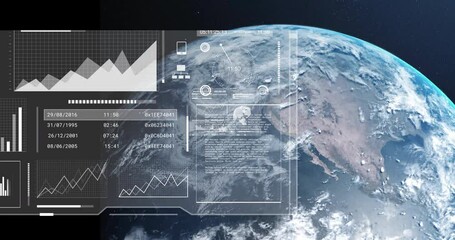 Futuristic Data Processing Visualization Over Digital Globe Videos
