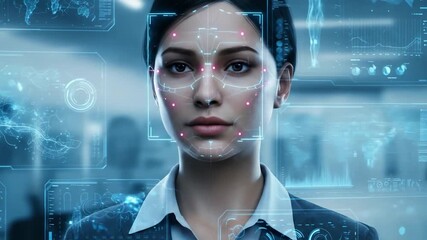 Futuristic Data Processing With Facial Recognition Interface Videos