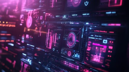 Futuristic Data Processing With Graphs On Screens In Digital Interface Videos