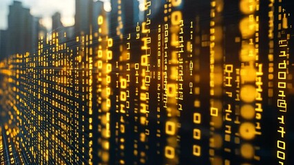 Futuristic Data Processing With Urban Cityscape Backdrop Videos