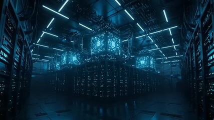 Futuristic Data Server Room With Glowing Communication Icons Videos