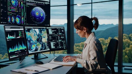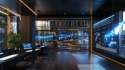 Futuristic Data Visualization In Office Workstation Videos