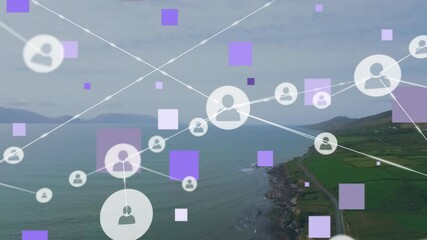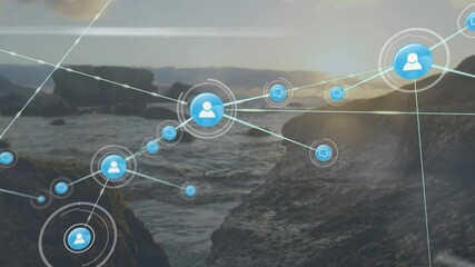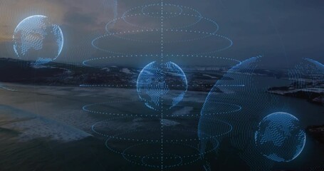 Futuristic Data Visualization Over Coastal Landscape Videos