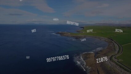 Futuristic Data Visualization Over Coastal Landscape Videos