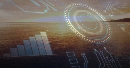 Futuristic Data Visualization Over Ocean Waves Videos