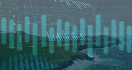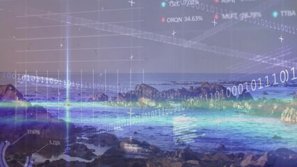 Futuristic Data Visualization Overlay On Coastal Seascape Videos