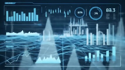 Futuristic Data Visualization Overlay On Digital Graphs Videos