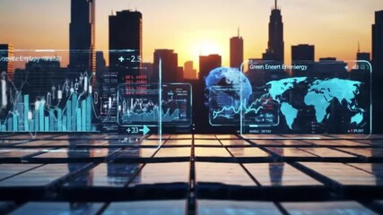 Futuristic Data Visualization Overlay On Urban Surface Videos
